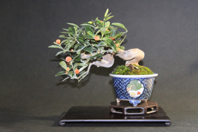 長方鉢は鉢の主張が強いですので、ともすれば合わせるのが難しいです。しかし、伊藤氏は見事に良い感じで合わせておられます。