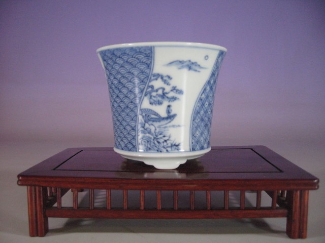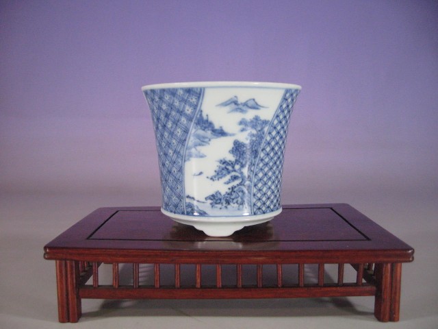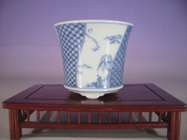 61.染付小紋五彩山水図長方