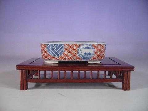 6.赤小紋染付長方鉢